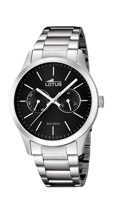 RELOJ DE CABALLERO LOTUS MULTIFUNCION, CAJA DE ACERO DE 42MM, CRISTAL MINERAL, ESFERA NEGRA, ESTANQUEIDAD 5ATM.