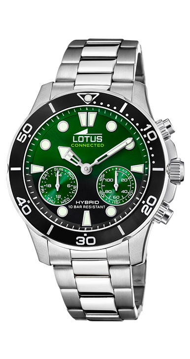 RELOJ DE CABALLERO LOTUS , CAJA DE ACERO DE 44,5MM, CRISTAL MINERAL, FUNCION CRONOMETRO, ESFERA VERDE, ESTANQUEIDAD 10ATM