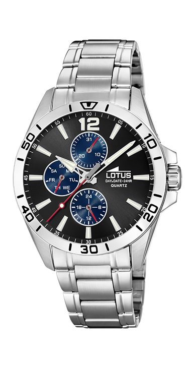 RELOJ DE CABALLERO LOTUS , CAJA DE ACERO DE 42MM, CRISTAL MINERAL, MULTIFUNCION, ESFERA NEGRA, ESTANQUEIDAD 5ATM