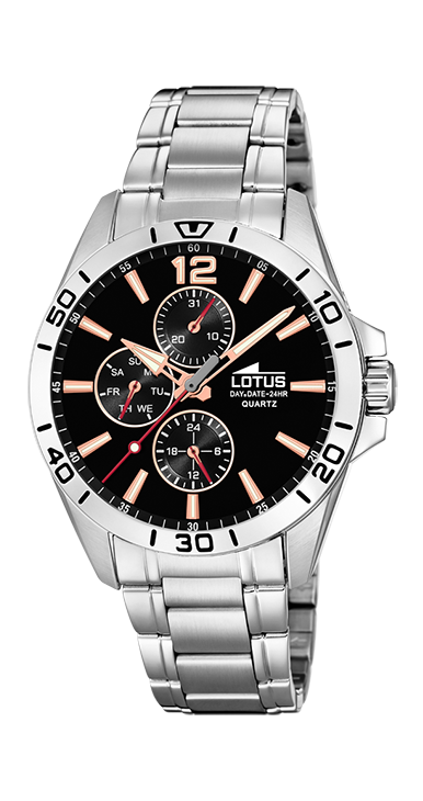 RELOJ DE CABALLERO LOTUS , CAJA DE ACERO DE 42MM, CRISTAL MINERAL, MULTIFUNCION, ESFERA NEGRA, ESTANQUEIDAD 5ATM