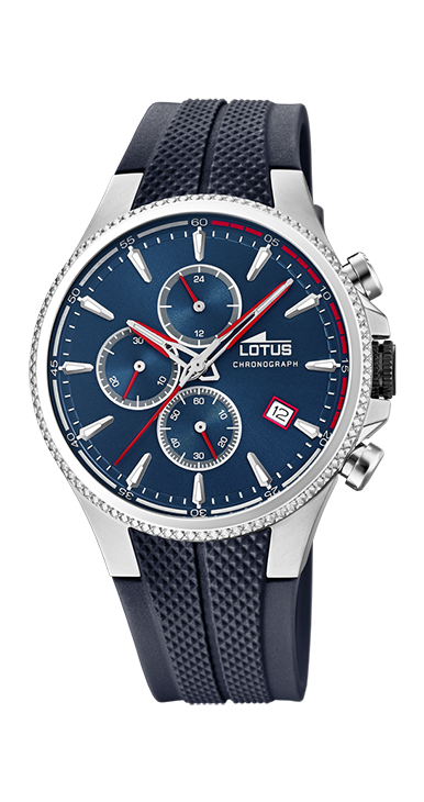 RELOJ DE CABALLERO LOTUS , CAJA DE ACERO DE 42MM, CRISTAL MINERAL, FUNCION CRONOMETRO, CORREA DE CAUCHO, ESFERA AZUL, ESTANQUEIDAD 5ATM.