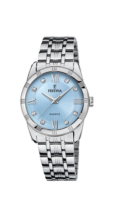 RELOJ DE SEÑORA FESTINA , CAJA DE ACERO DE 32MM, CRISTAL MINERAL, ESFERA AZUL, ESTANQUEIDAD 5ATM.