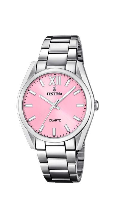 RELOJ DE SEÑORA FESTINA, CAJA DE ACERO DE 36,8MM, CRISTAL MINERAL, ESFERA ROSA, ESTANQUEIDAD 5ATM.