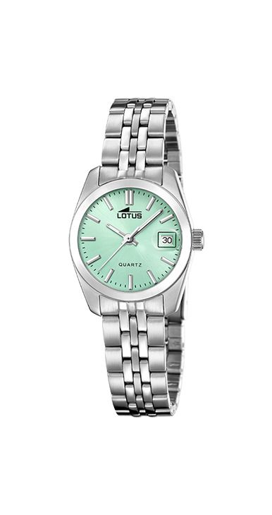 RELOJ DE SEÑORA LOTUS , CAJA DE ACERO DE 26MM, CRISTAL MINERAL, ESFERA VERDE, ESTANQUEIDAD 5ATM.
