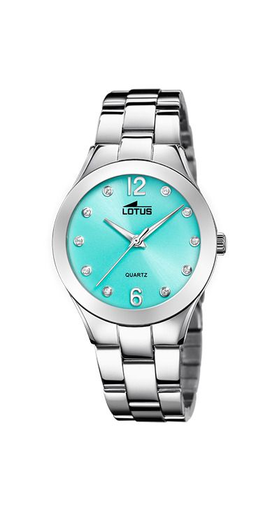 RELOJ DE SEÑORA LOTUS , CAJA DE ACERO DE 32,5MM, CRISTAL MINERAL, ESFERA TURQUESA, ESTANQUEIDAD 5ATM.